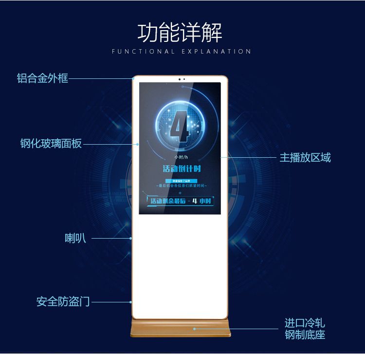 43寸立式廣告機(jī)落地式一體機(jī)高清顯示屏(金色邊框)